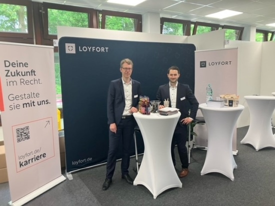 Am 25. Mai 2023 fand der Fakultätskarrieretag – die Jobmesse des Fachbereichs Rechtswissenschaft Bremen – statt. Wir freuen uns, dass LOYFORT dabei war. Dr. Jan Nollmann und Dr. Amel Sarić haben zahlreiche Gespräche mit Studierenden, Promovierenden und Referendar:innen über das juristische Referendariat und den Berufseinstieg geführt. Wir freuen uns auf Bewerbungen für das Referendariat bei LOYFORT und darauf, hoffentlich zukünftige Kolleg:innen gewinnen zu können.